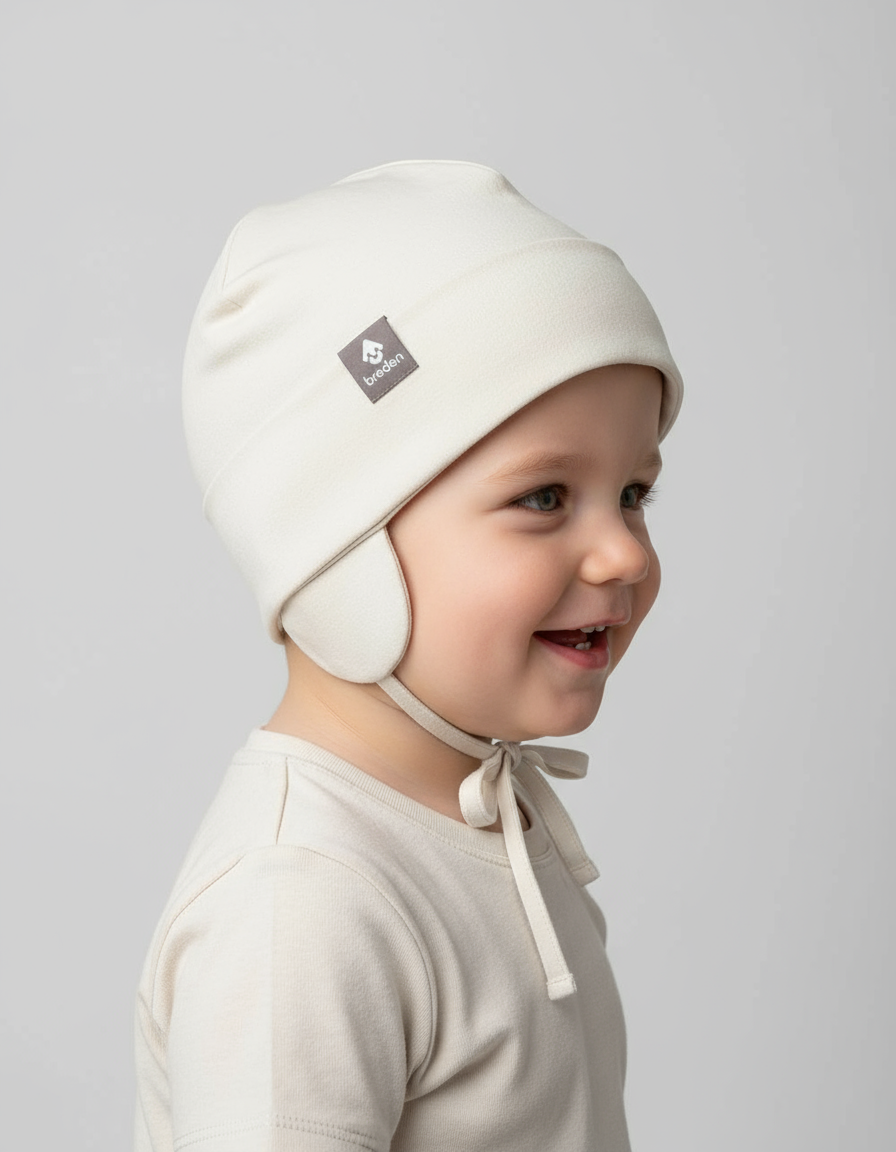 Baby hat HAPPY stays perfectly in place while keeping your baby’s ears securely covered. Soft, yet strong strings ensure that the hat will not fly away even if your little one tries to remove it. Quadruple-layered brim adds extra wind protection.