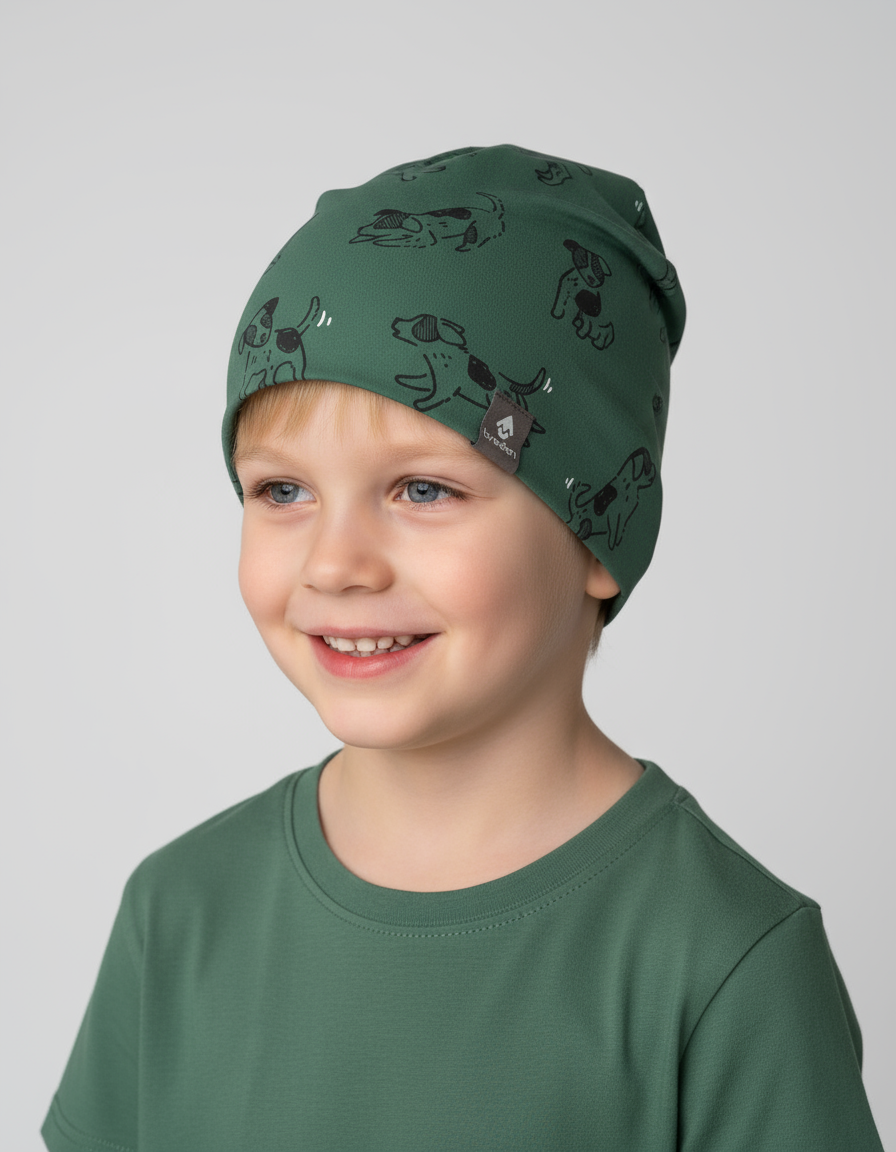 Double cotton hat DARGO is the perfect baggy hat for spring and autumn. Pre-stitched folds ensure the best fit, while securely covering your kid's ears. DARGO can also be used under a bike helmet.